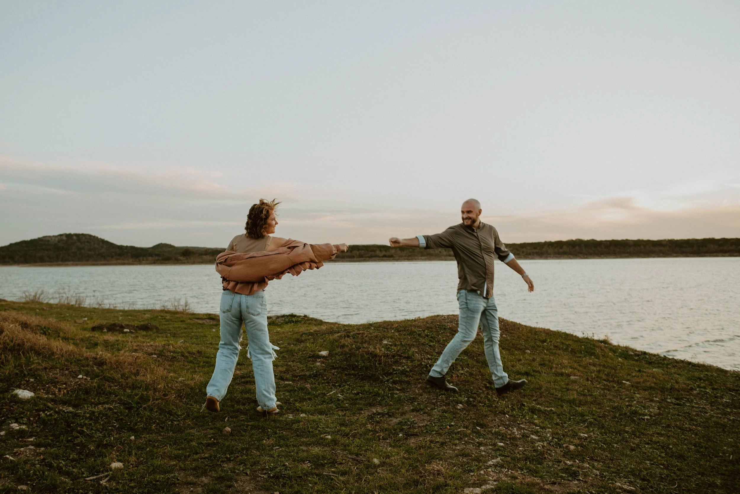 This dreamy, playful couples session with my best friends felt exactly like that. Sunlight setting across the lake, laughter echoing across an open expanse, and the kind of love that’s been lived in for years. The kind that feels easy. Familiar. Home.